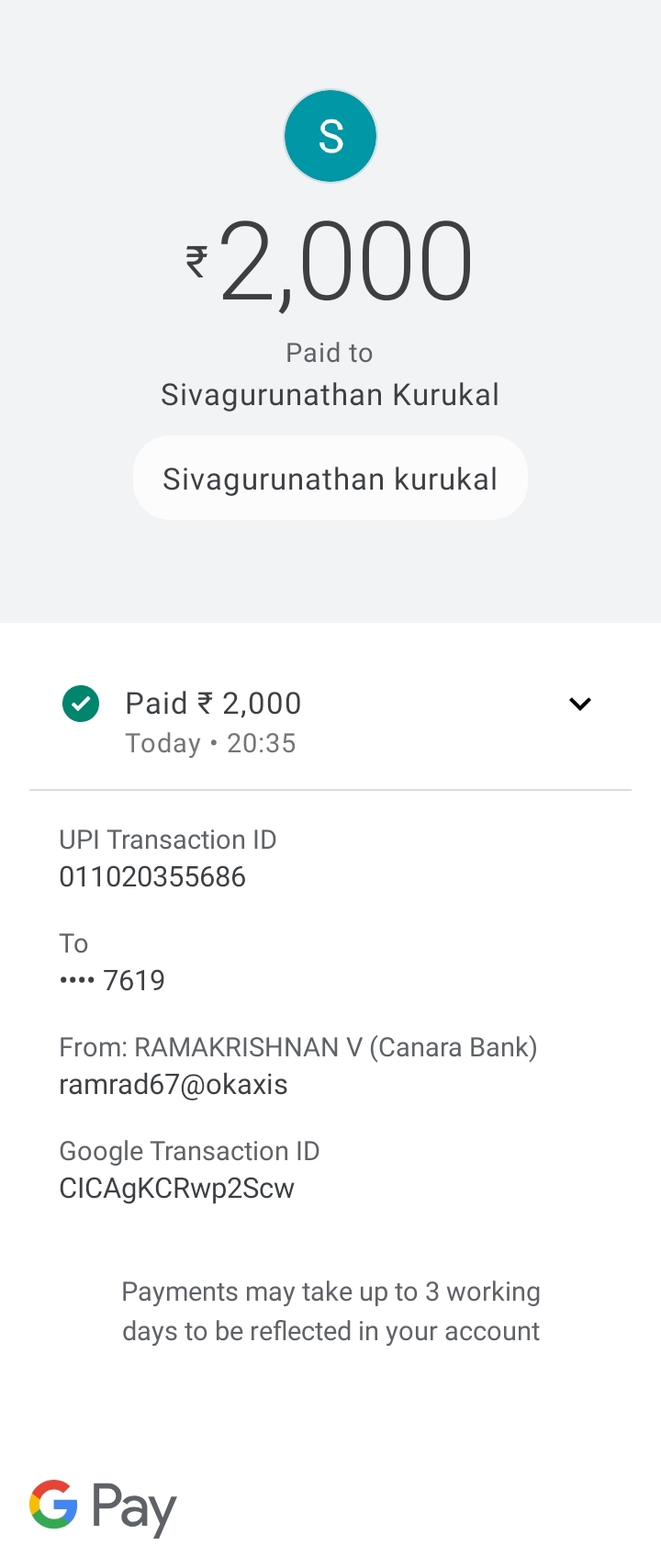 Please listen to the videos sent across by a few Gurukkals conveying their blessings to all those who had donated for this cause.